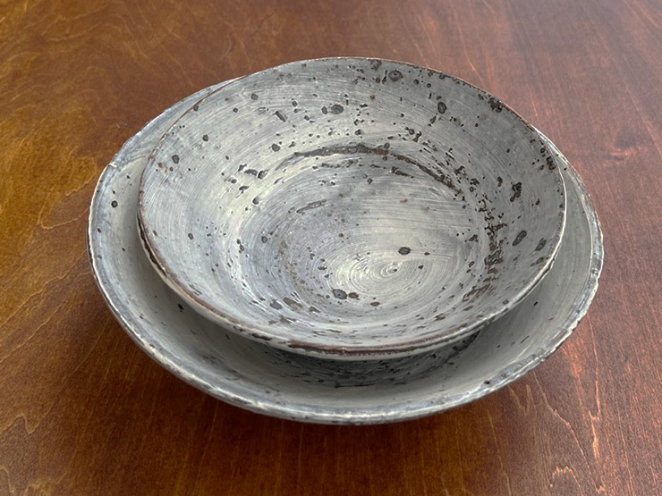 灰釉をかけた小鉢と皿なら一瞬でお店の料理になります