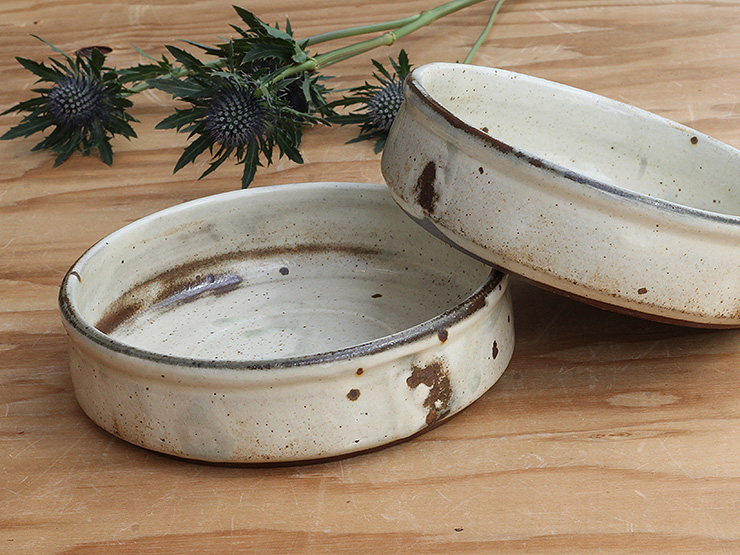 美濃焼の陶芸家、菅野一美さんの平鉢は優しくて凛とした風合い