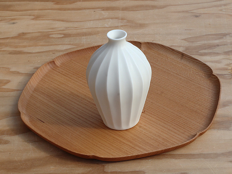 花瓶は実や花がなくても、そのままで飾っておきたいくらいの美しさです。生地の色も素晴らしいのですが、しのぎの施し方が平松さんはとても綺麗なんです。すっと迷いなく上から下へ。でも決して冷たい印象ではないんです。