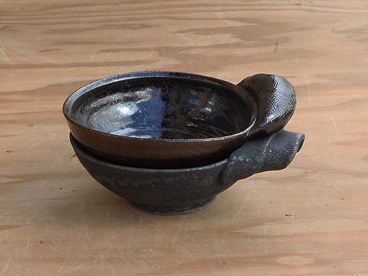 同じ独歩炎さんの飴釉袋手とんすい鉢はこちらです。ほぼ同じ大きさなので重なりもいいです。