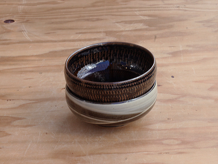 鉄くろ釉と寂がらし釉、鮮やかなコントラストです