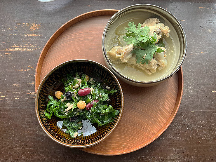 灰釉をかけた小鉢と皿なら一瞬でお店の料理になります