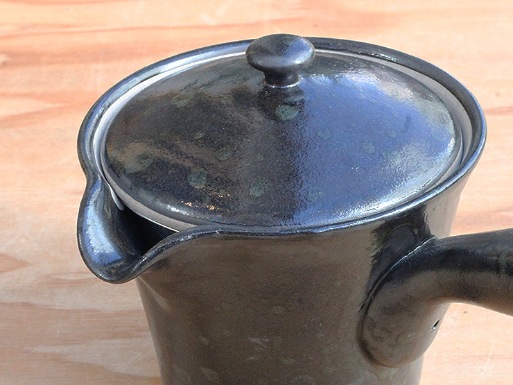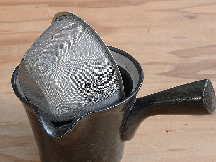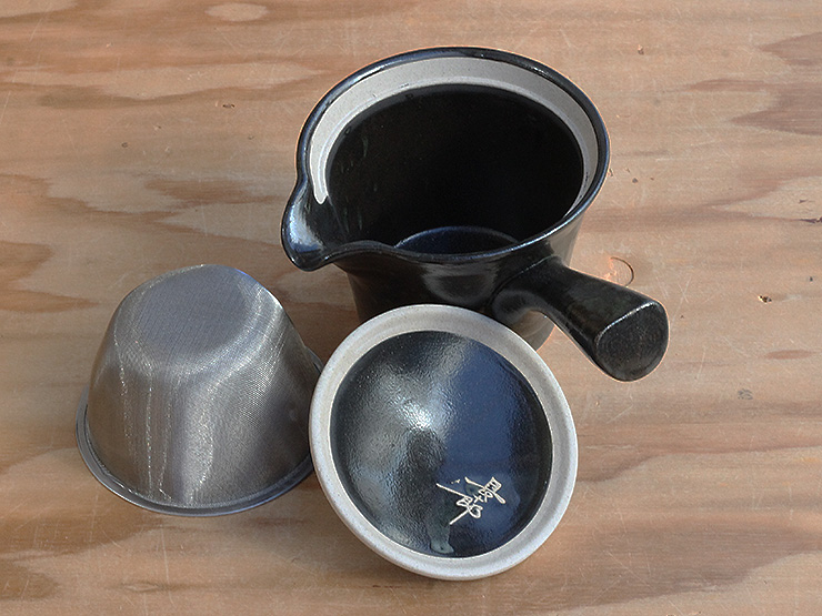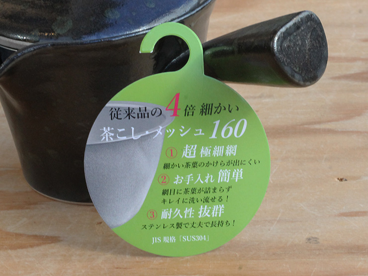 最近になりコンスタントに作られるようになり、また茶漉しのメッシュもより細かく改良され、同じ黒でも風合いも少し変わりましたが再度扱わせていただくことにしました。