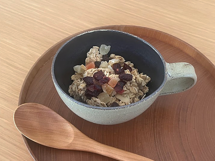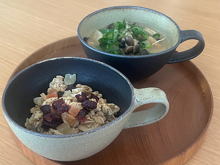 我が家では朝食にパンを食べるときでも味噌汁を作ること多いのですが、そんなときにはお椀に盛るよりこういうカップに盛ったりします。ミソスープがこのカップにはぴったりな感じです。