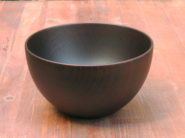 こういう木の大きめのお椀をさがしていました。 自宅で使っていたのは「蒔絵」のある昔風の雑煮碗。 大きさとしてはお雑煮やお粥・雑炊を食べるときにはちょうどよくて、そしてさすがに木製だけあって持っても熱くならずに重宝していました。