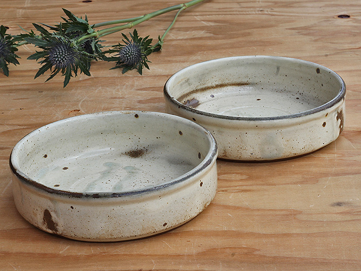 美濃焼の陶芸家、菅野一美さんの平鉢は優しくて凛とした風合い