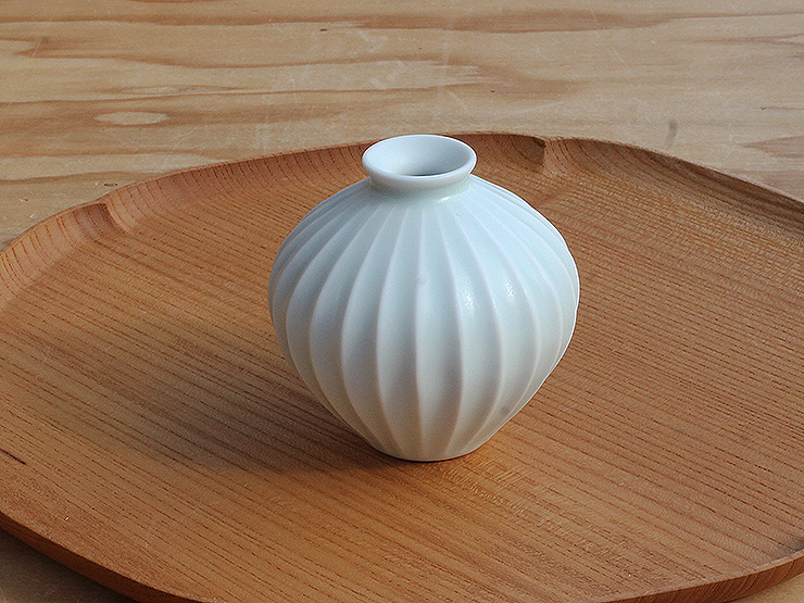 花瓶は実や花がなくても、そのままで飾っておきたいくらいの美しさです。生地の色も素晴らしいのですが、しのぎの施し方が平松さんはとても綺麗なんです。すっと迷いなく上から下へ。でも決して冷たい印象ではないんです。