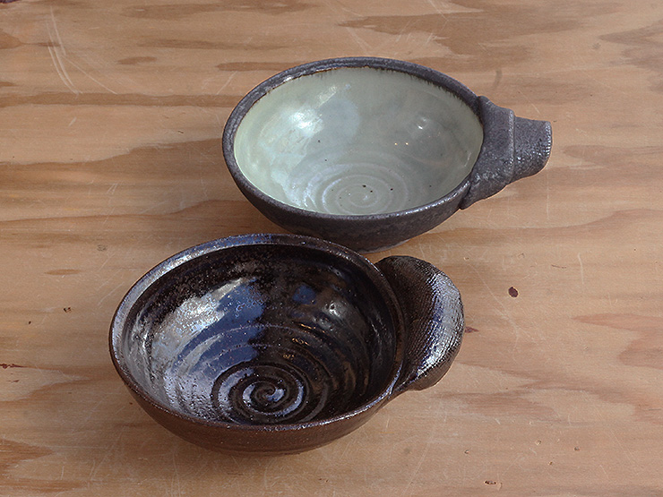 鉄くろ釉と寂がらし釉、鮮やかなコントラストです