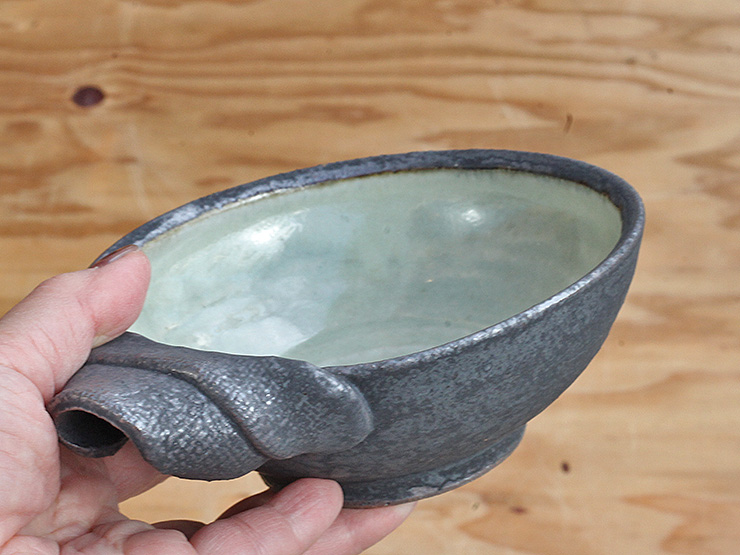 「手」の部分がくるっと巻いたような形で突き出ていて、ちょっとオブジェのよう。「とんすい」のイメージが変わりますね。ごく普通に小鉢としてサラダや和え物を盛るのにちょうどよいサイズだと思います。