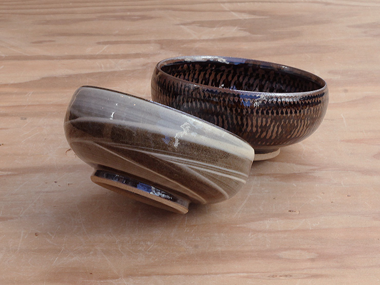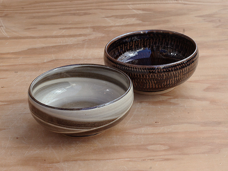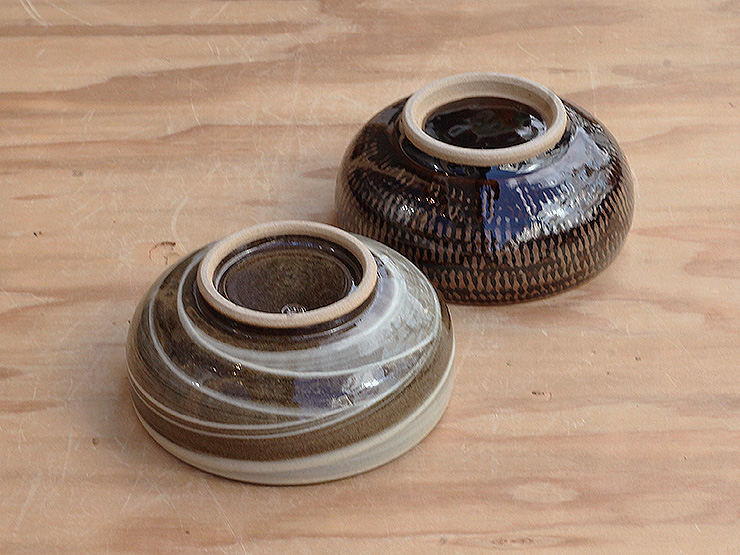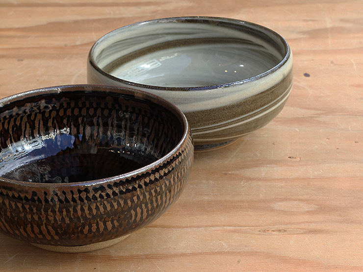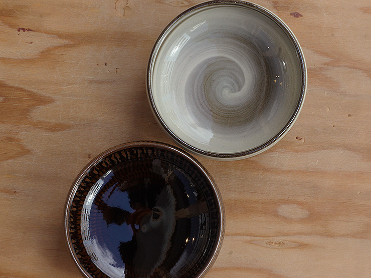 鉄くろ釉と寂がらし釉、鮮やかなコントラストです