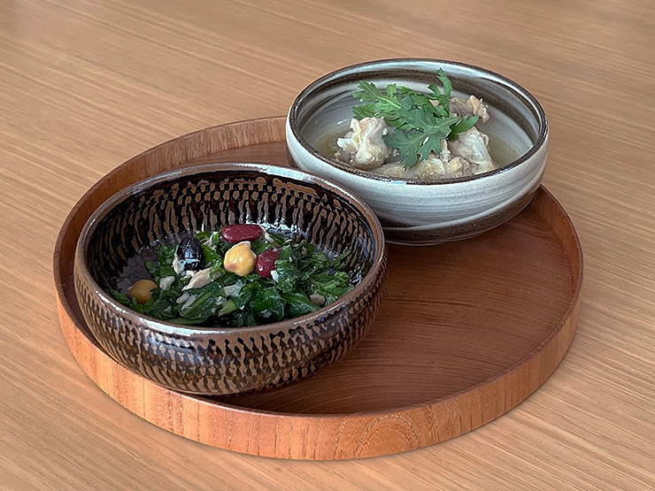 灰釉をかけた小鉢と皿なら一瞬でお店の料理になります