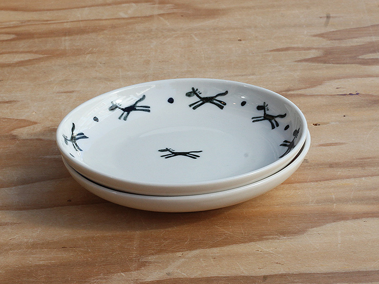 手描きなので絵も1匹ずつ違っているのが逆に楽しいです。何か励ましてあげたくなる状況の人にあげたくなる器です。色はややアイボリーがかった白で恐らく画面上よりも温かみのある感じの仕上りです。