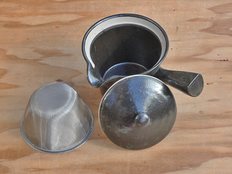 最近になりコンスタントに作られるようになり、また茶漉しのメッシュもより細かく改良され、同じ黒でも風合いも少し変わりましたが再度扱わせていただくことにしました。