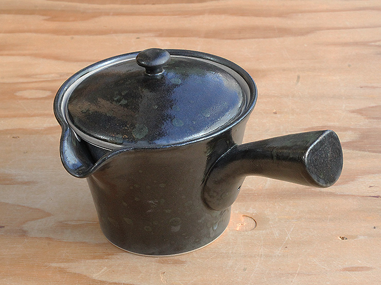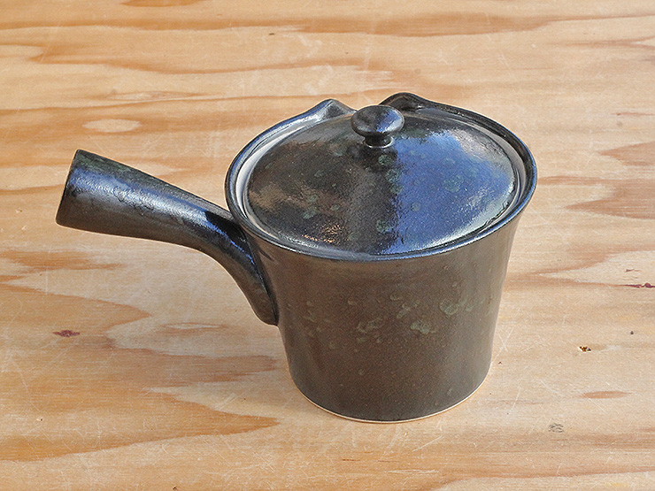 黒釉はベタッとした黒ではなく部分的に赤みや緑を帯びた風合いです。