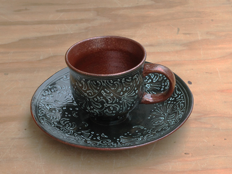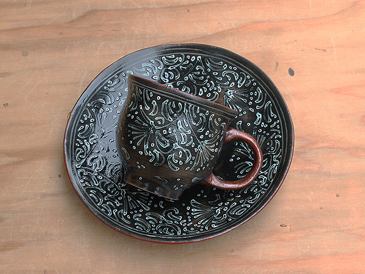 鉄くろ釉と寂がらし釉、鮮やかなコントラストです