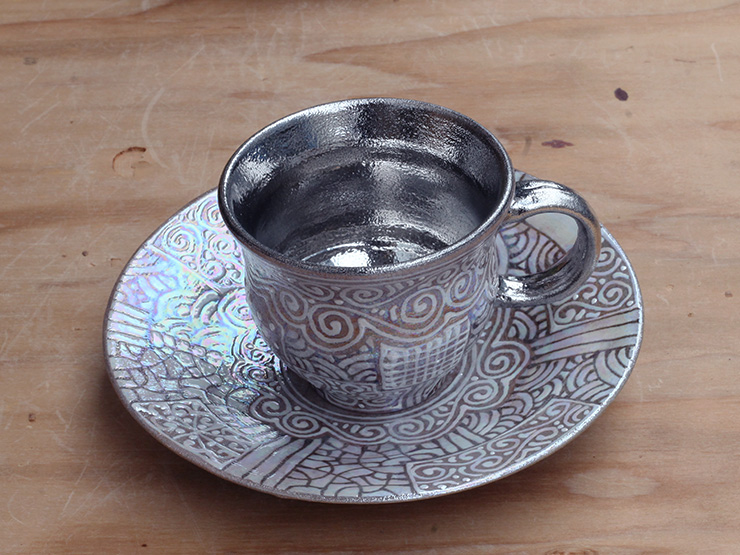 5~6回も窯で焼き、紋様を入れ、と手間と時間のかかるラスター彩ですが